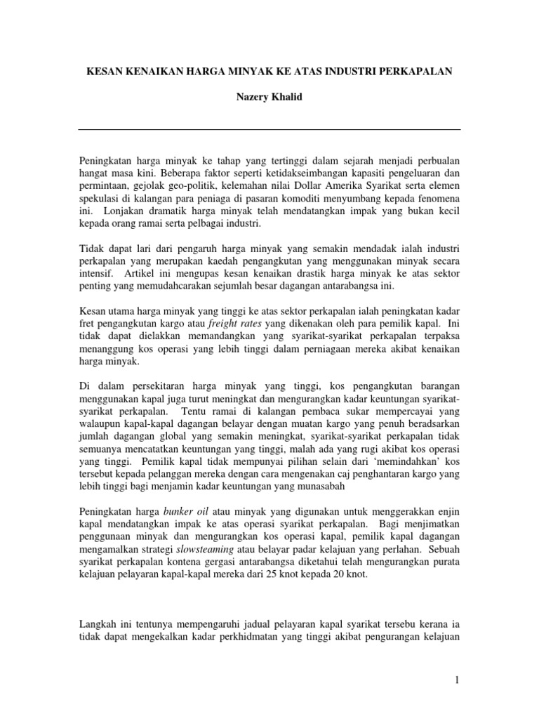 Dewan Ekonomi Kesan Kenaikan Harga Minyak Ke Atas Industri Perkapalan