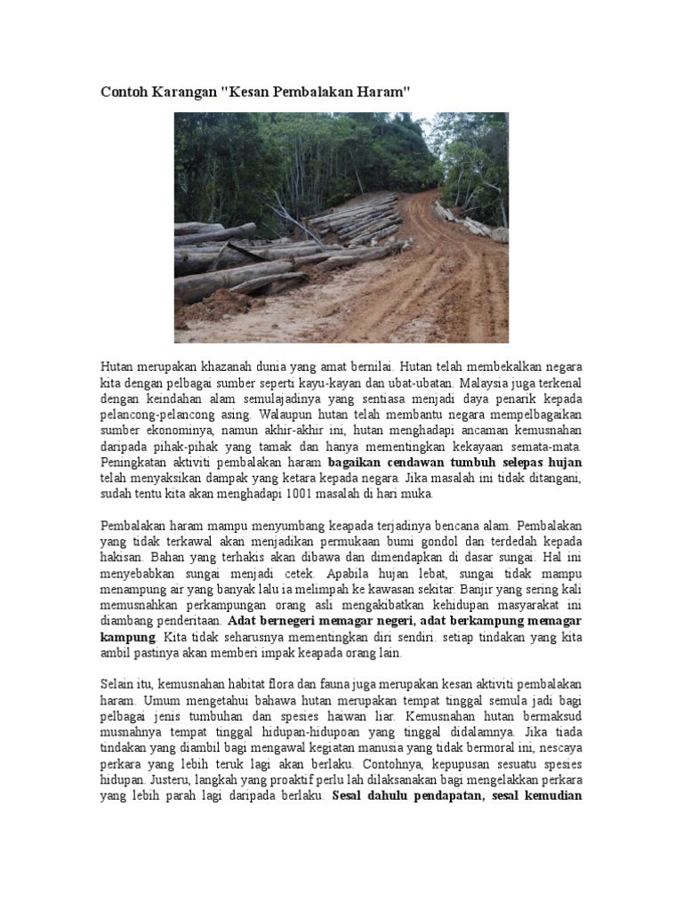 Contoh Karangan Pembalakan Haram Doc