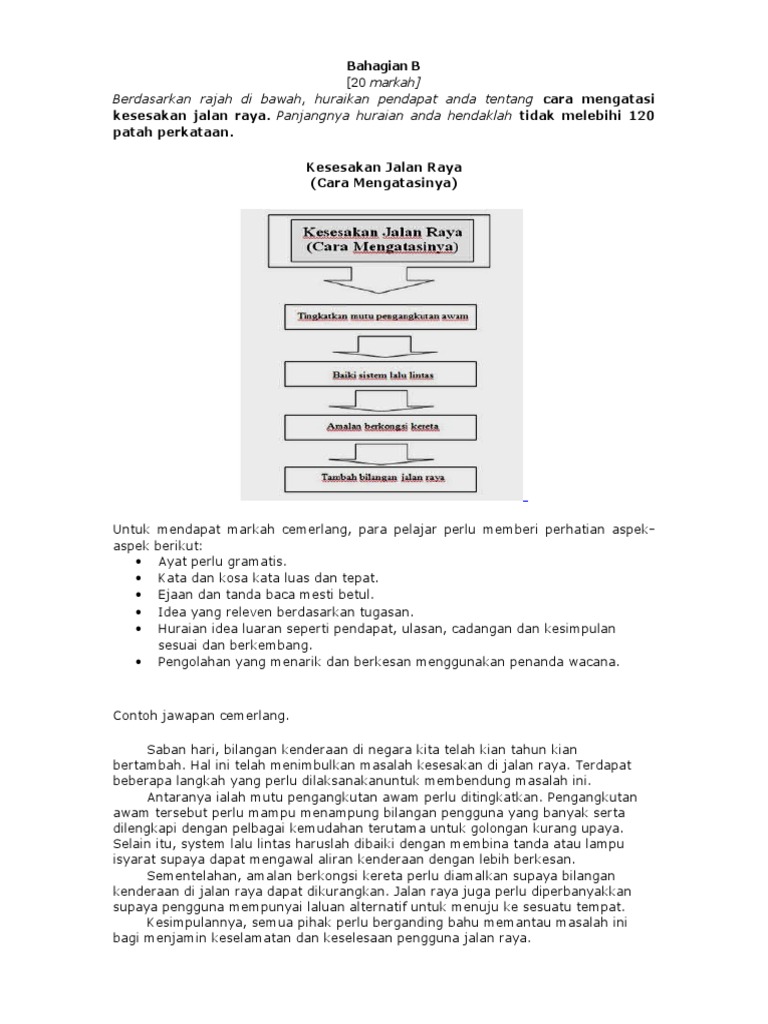 Spm bahasa melayu essays. Pelbagai kempen telah dijalankan oleh pihak kerajaan namun usaha tersebut ibarat mencurahkan air ke daun keladi kerana formula untuk menyelesaikannya masih menemui jalan buntu. Kesesakan jalan raya yang serius boleh menyebabkan pencemaran paru paru sesak nafas dan pening kepala.
