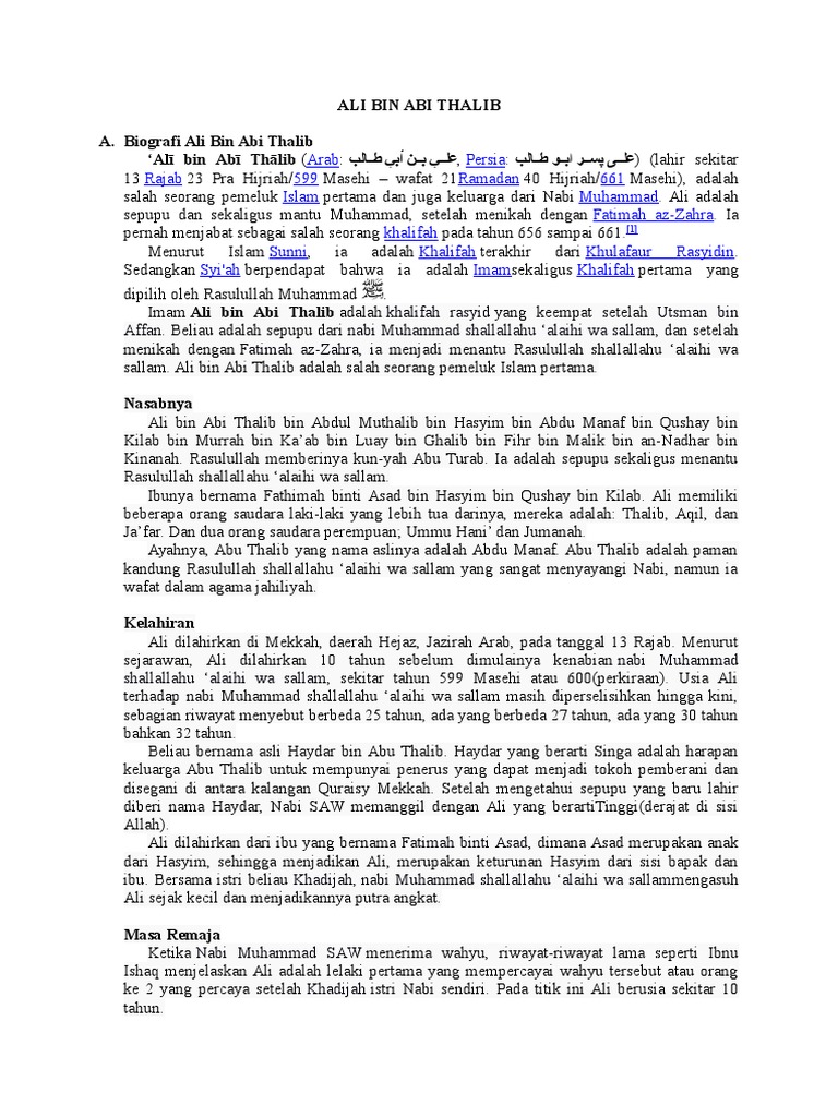 Biografi Ali Bin Abi Thalib Lengkap Dari Masa Kecil Hingga Menjadi Khalifah Islami Dot Co