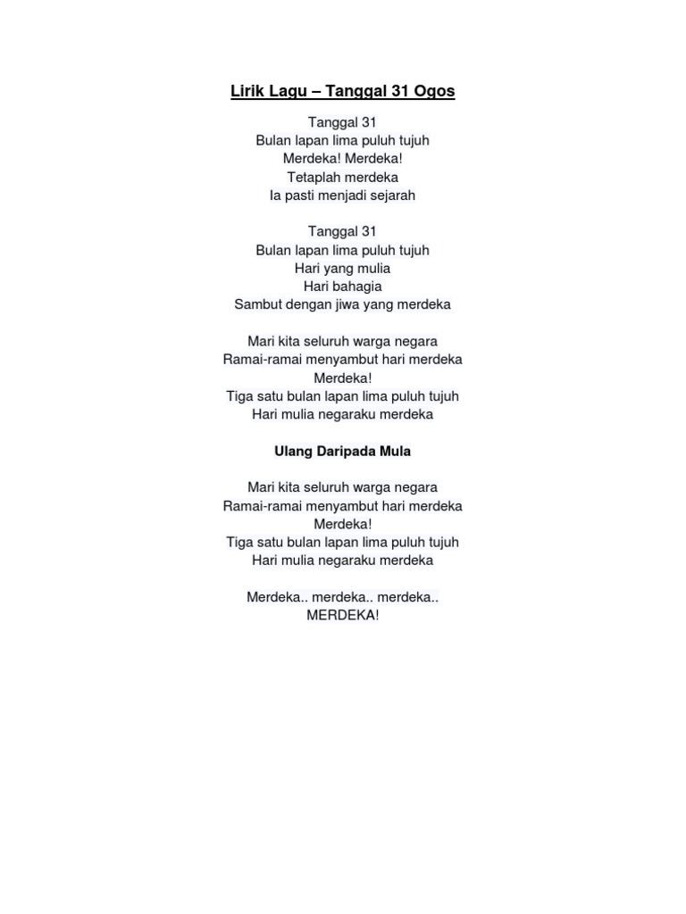 Lagu Tanggal 31 Ogos Lirik Youtube
