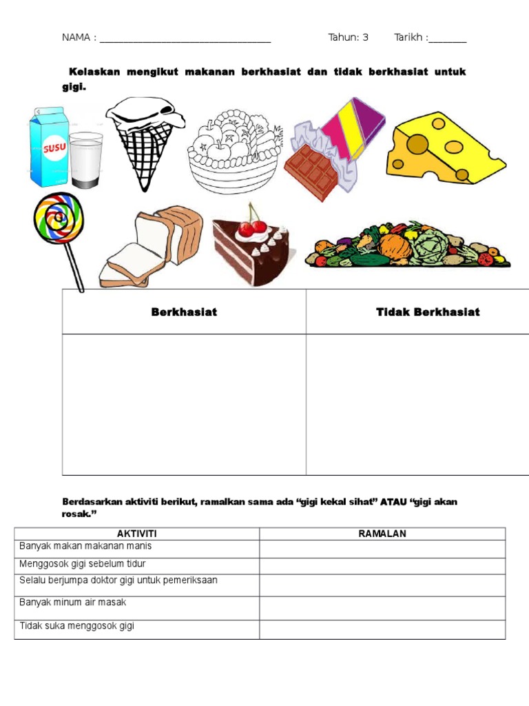 Lembaran Kerja Makanan Berkhasiat Dan Tidak Berkhasiat Prasekolah