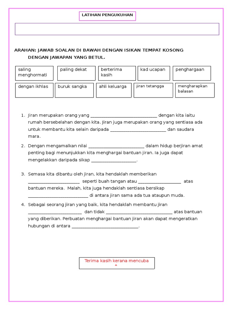 Lembaran Kerja Pendidikan Moral Tahun 4