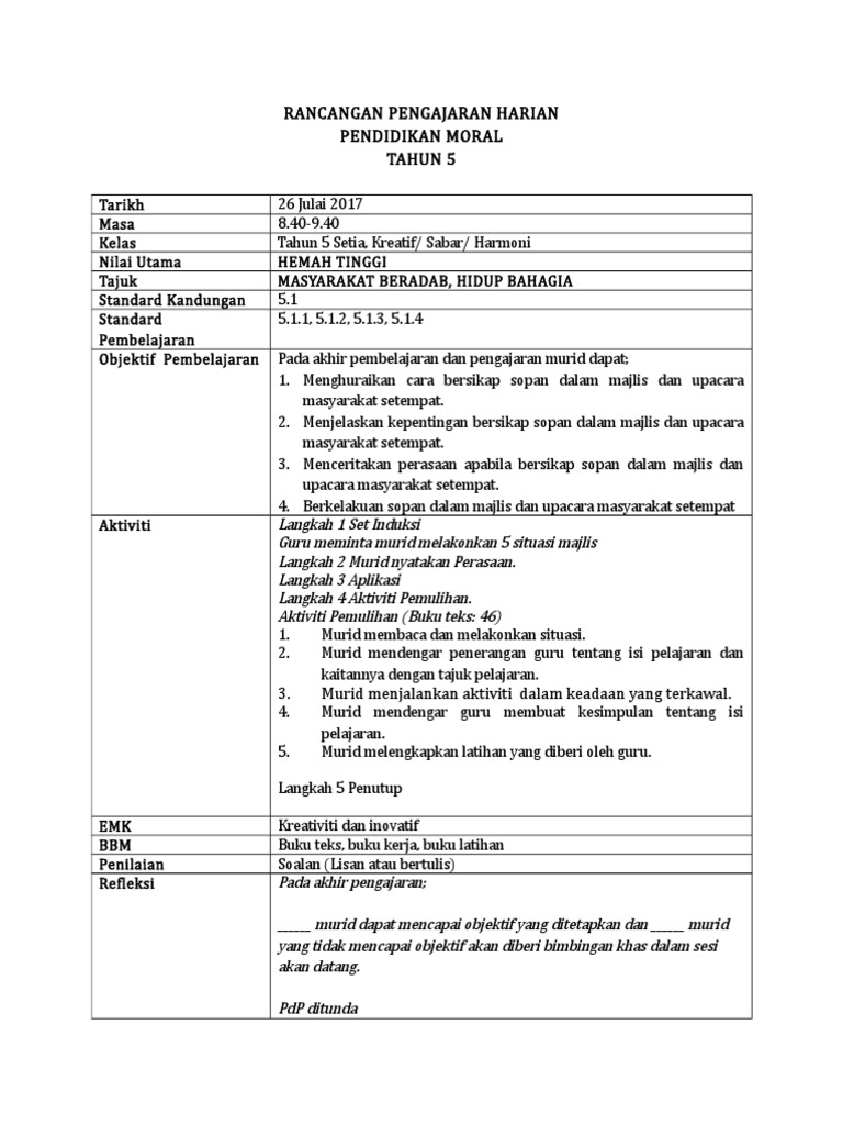 Hemah Tinggi Moral Tahun 5 Lessons Tes Teach
