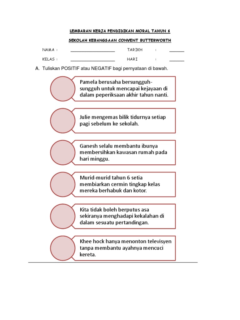 Lembaran Kerja Pendidikan Moral Tahun 6