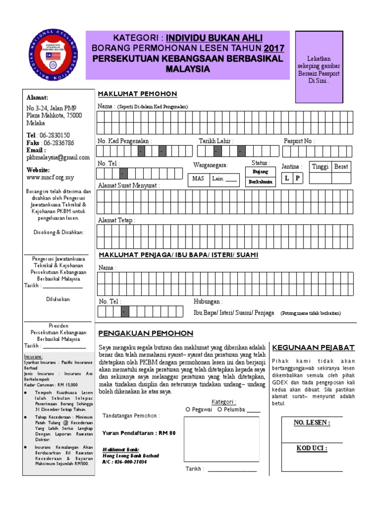 Mncf Borang Lesen Individu Bukan Ahli 2017 Pdf