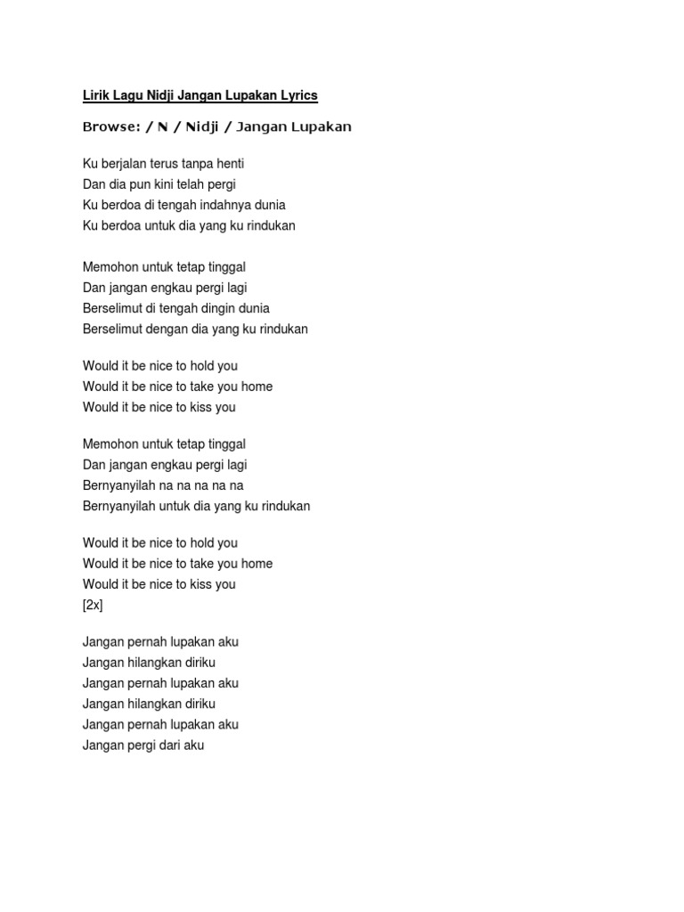 Doc Lirik Lagu Bila Nadya Fatira Melvin Sawedu Academia Edu