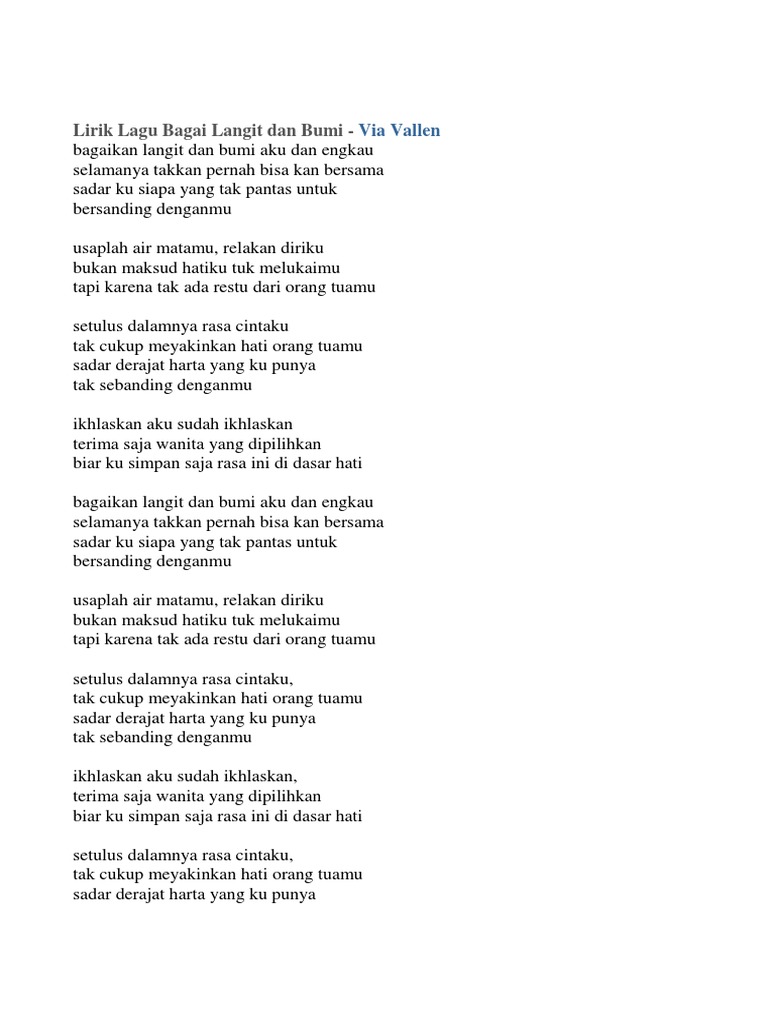 Lirik Lagu Bagaikan Langit Dan Bumi Yang Dipopulerkan Via Vallen Sonora Id