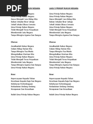 Lirik Lagu 5 Prinsip Rukun Negara Docx
