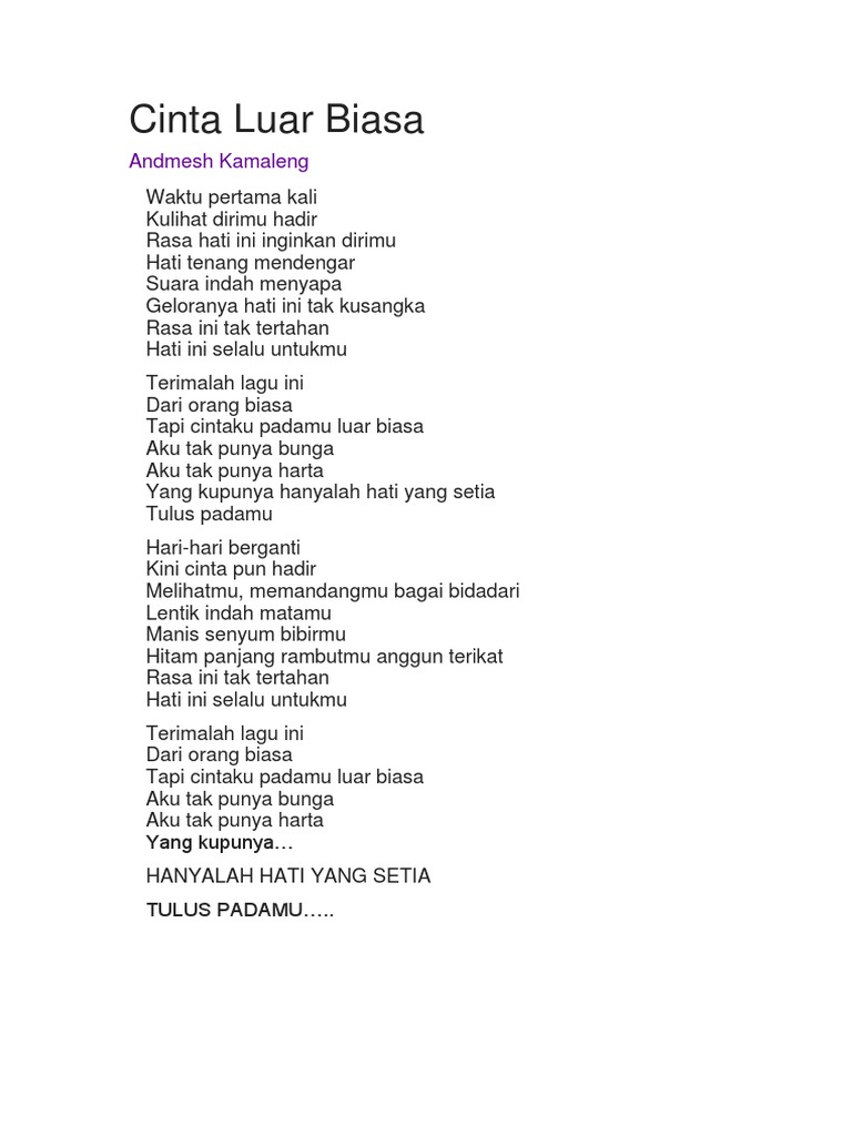 Lirik Lagu Cinta Luar Biasa Andmesh Kamaleng Wattpad