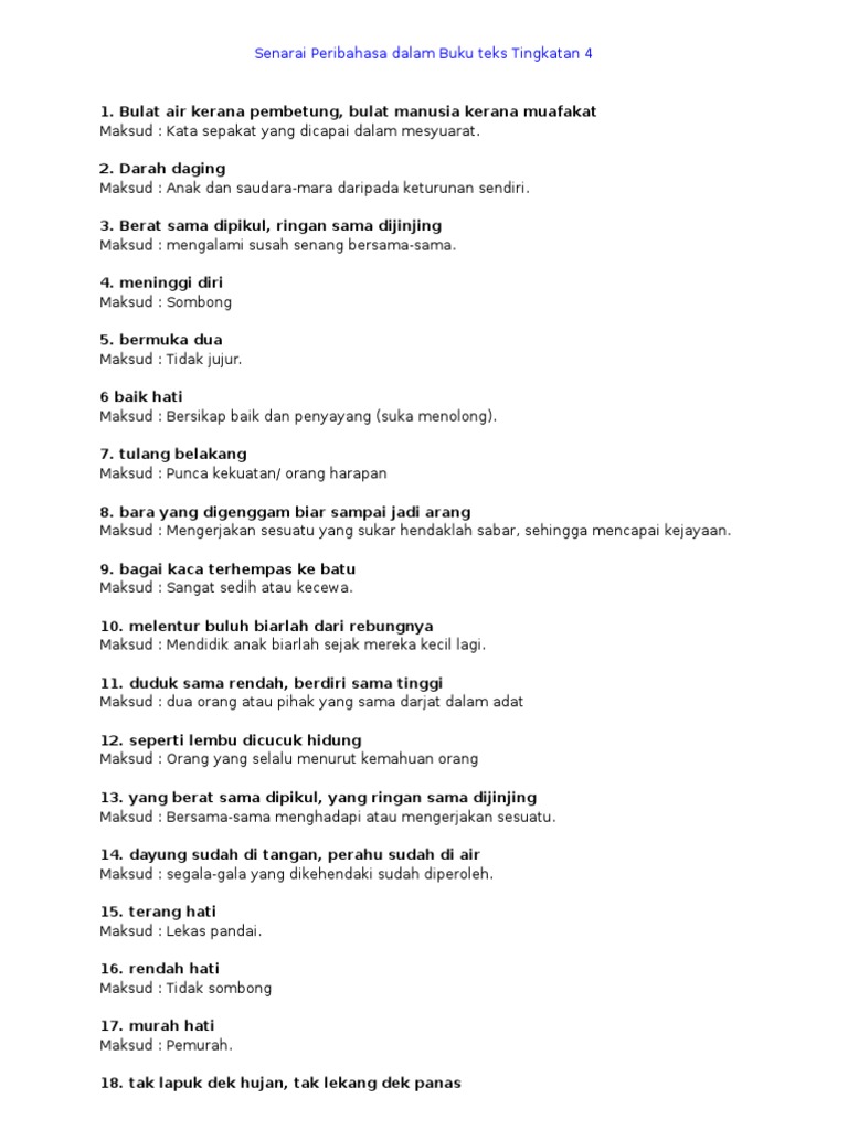 Senarai Peribahasa Dalam Buku Teks Tingkatan 4